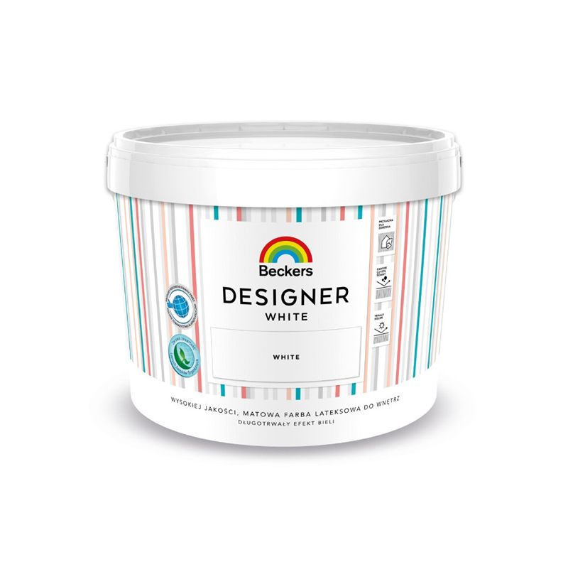 Beckers Designer White to wysokiej klasy, biała farba lateksowa na bazie wody, przeznaczona do malowania ścian oraz sufitów. Zapewnia eleganckie, głęboko matowe wykończenie, które podkreśla estetykę wnętrza. Produkt posiada rekomendację Polskiego Towarzystwa Alergologicznego oraz spełnia surowe europejskie standardy dotyczące niskiej emisji Lotnych Związków Organicznych (LZO).