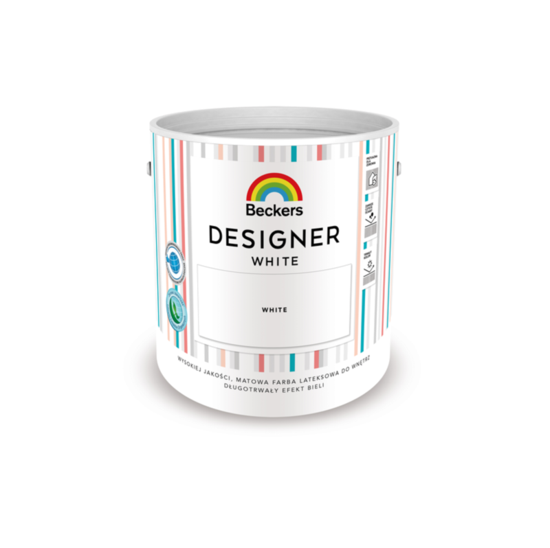 Beckers Designer White to wysokiej klasy, biała farba lateksowa na bazie wody, przeznaczona do malowania ścian oraz sufitów. Zapewnia eleganckie, głęboko matowe wykończenie, które podkreśla estetykę wnętrza. Produkt posiada rekomendację Polskiego Towarzystwa Alergologicznego oraz spełnia surowe europejskie standardy dotyczące niskiej emisji Lotnych Związków Organicznych (LZO).