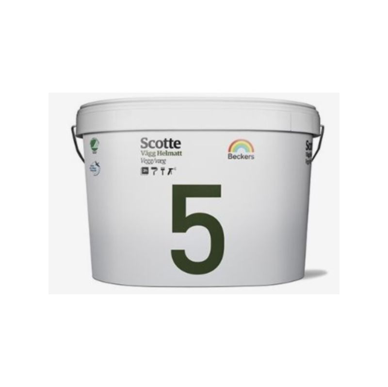 Beckers Scotte 5 to matowa, wodorozcieńczalna farba, zaprojektowana do malowania nowych oraz wcześniej malowanych ścian i sufitów wewnątrz pomieszczeń. Dzięki swojej formule tworzy gładką, równą powierzchnię odporną na delikatne przemywanie, co czyni ją idealną do pomieszczeń, w których powierzchnie mogą być narażone na zabrudzenia. Farba nie żółknie z upływem czasu, szybko schnie, a po zaledwie 3 godzinach można nałożyć kolejną warstwę.
