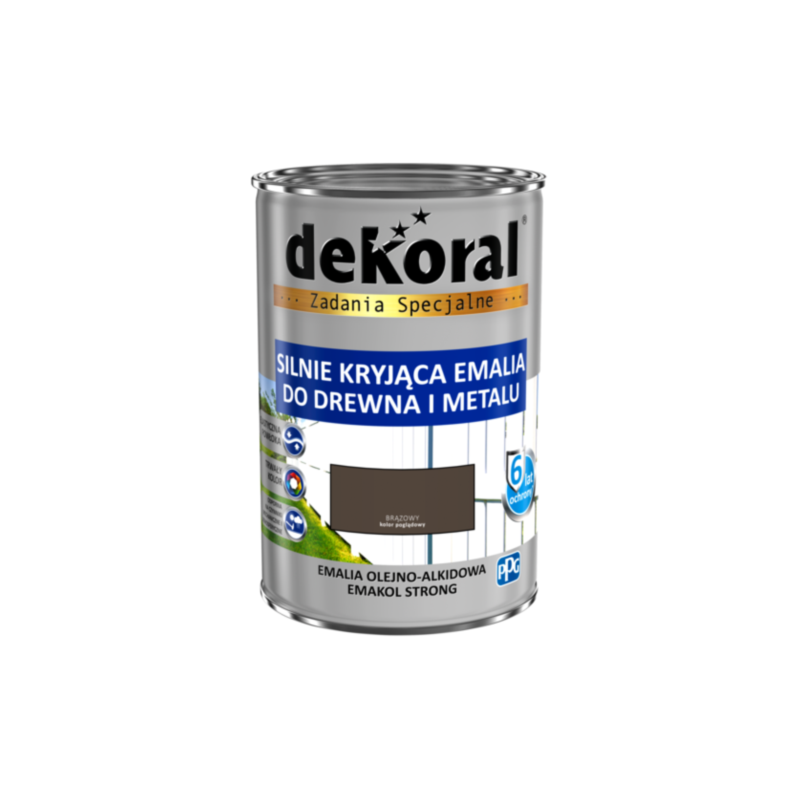 Dekoral Emakol Strong to gwarancja trwałego wykończenia i nieskazitelnego połysku na lata. Dzięki odporności na zmywanie oraz uszkodzenia, doskonale sprawdza się w najbardziej wymagających miejscach. Wybierając Emakol Strong, zyskujesz piękną, solidnie zabezpieczoną powierzchnię oraz produkt, który cieszy się uznaniem tysięcy zadowolonych klientów.