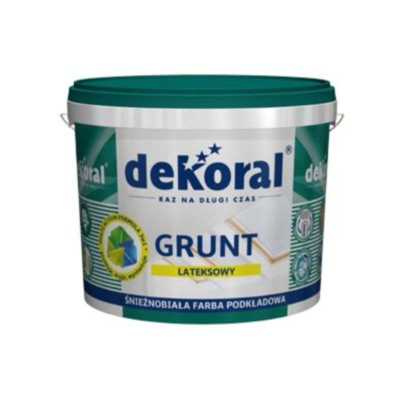 Grunt Lateksowy DEKORAL to niezastąpiony produkt, który ułatwia i przyspiesza proces malowania, zapewniając doskonałą jakość wykończenia powierzchni. Idealny do zastosowania przed malowaniem ścian i sufitów w każdym wnętrzu.