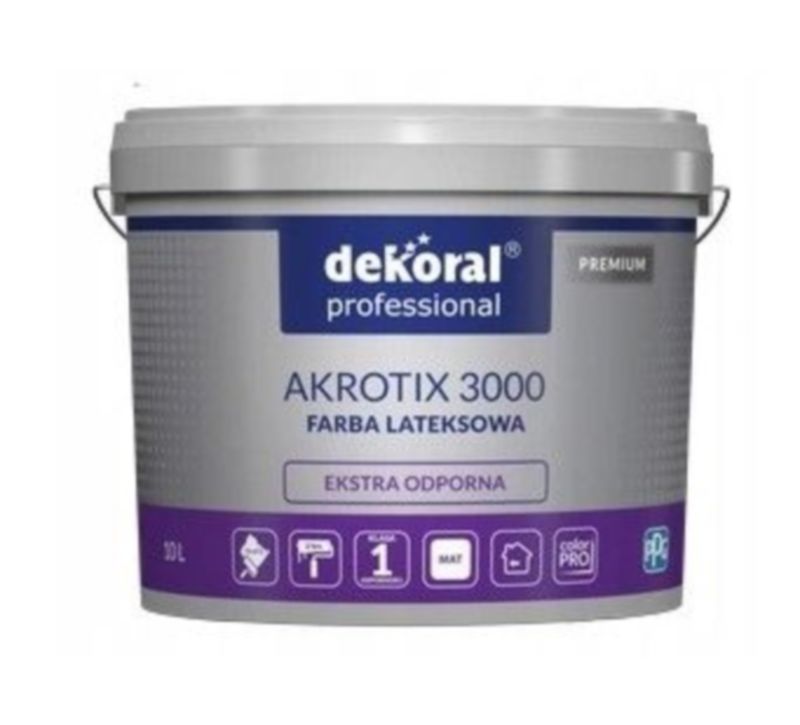Akrotix 3000 Ag+ Biały to specjalistyczna farba antybakteryjna, która dzięki technologii z dodatkiem jonów srebra Ag+ skutecznie ogranicza rozwój bakterii i innych mikroorganizmów na powierzchni pomalowanej farbą. Jest idealnym rozwiązaniem do pomieszczeń, w których higiena i czystość są szczególnie ważne, takich jak szpitale, szkoły, biura, kuchnie czy łazienki. Farba charakteryzuje się wysoką odpornością na zabrudzenia oraz łatwością w utrzymaniu czystości.