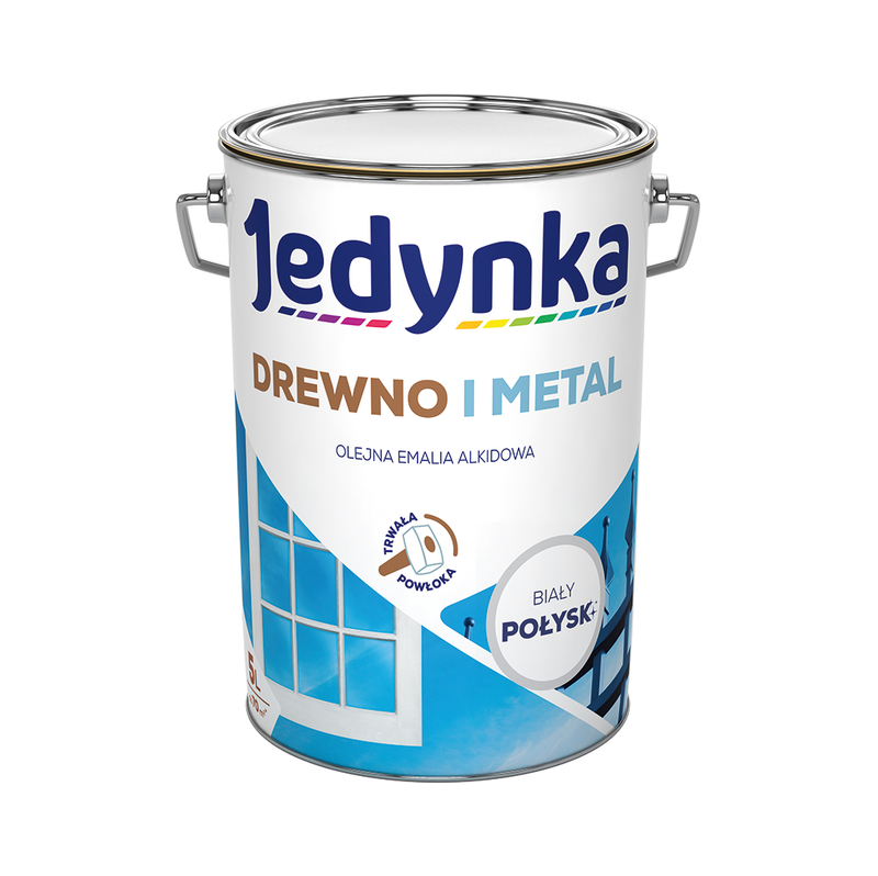Jedynka Drewno i Metal Połysk to nisko-aromatyczna, olejna emalia alkidowa przeznaczona do szerokiego zastosowania. Dzięki swojej nowoczesnej recepturze tworzy trwałe, gładkie i połyskowe powłoki o wysokich walorach dekoracyjnych. Produkt jest bezpieczny w użytkowaniu, ponieważ nie zawiera szkodliwych związków takich jak chrom czy ołów.
