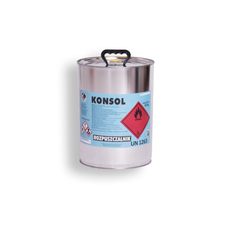 Rozpuszczalnik KONSOL dostępny jest w praktycznych opakowaniach o pojemności 18 kg.