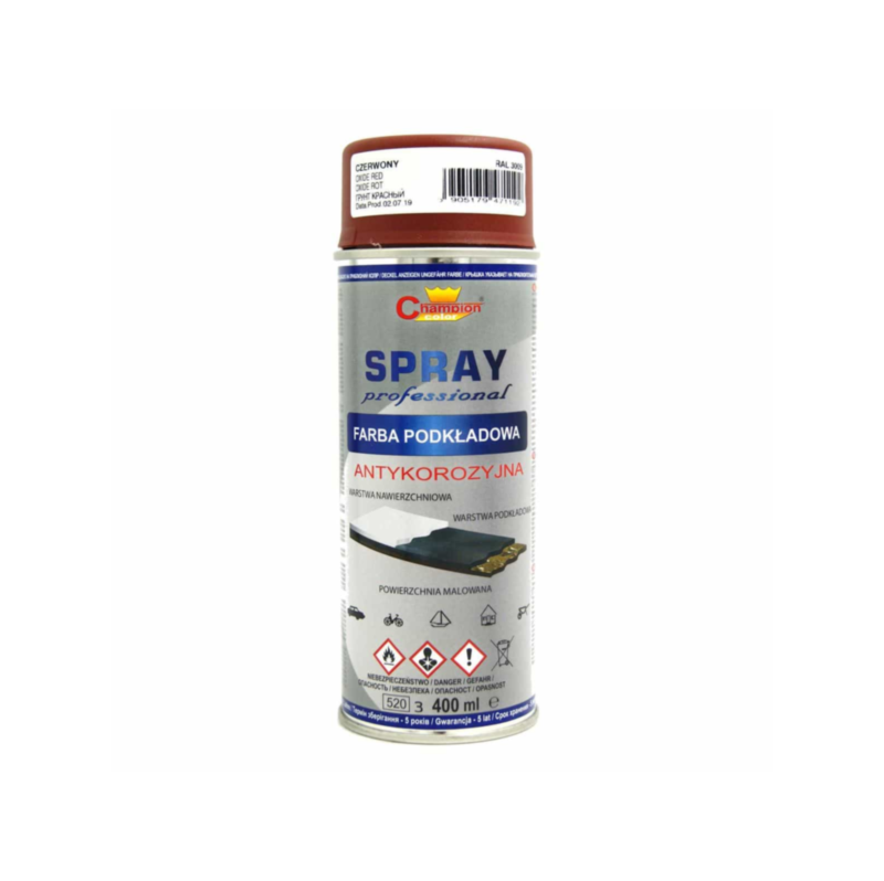 Przedstawiamy Spray Podkład Czerwony RAL3009 400ML Champion, idealne rozwiązanie dla tych, którzy poszukują wysokiej jakości podkładu w wygodnej formie sprayu. Produkt ten, o pojemności 0,40 litra, doskonale sprawdzi się zarówno w zastosowaniach wewnętrznych, jak i zewnętrznych.